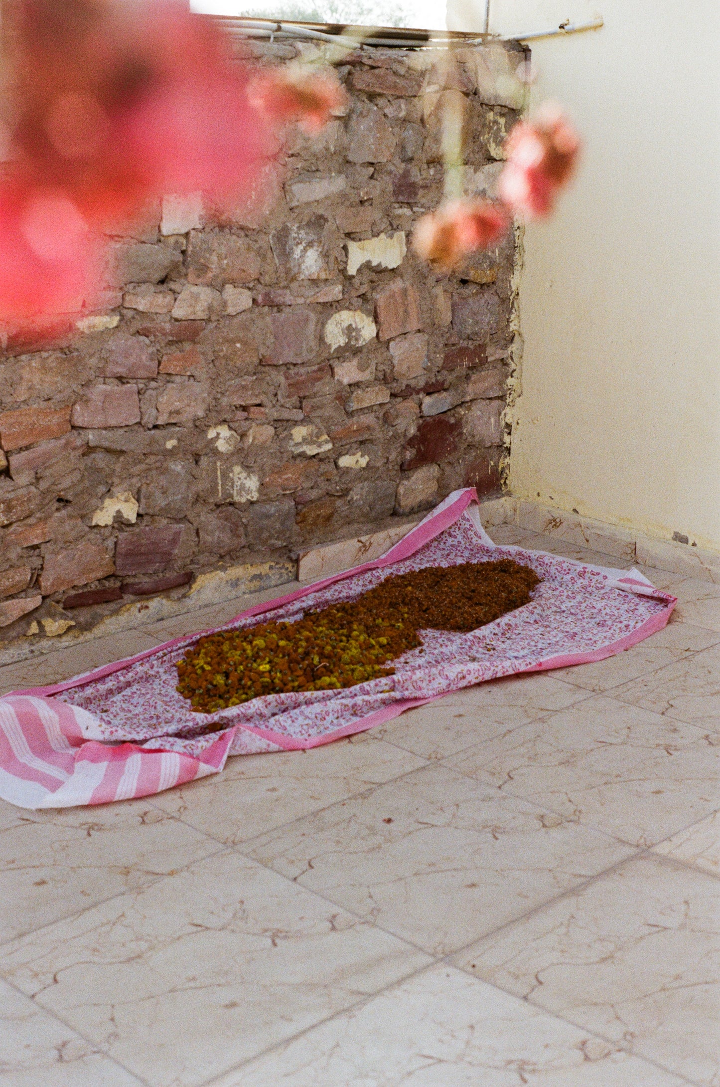 Sappan wood’s pink reappears on the top of this dress in a soft, luminous shade that glows gently, like a delicate blush of light. The bottom part is dyed with marigold, a flower cherished in Ayurveda for its healing and anti-inflammatory benefits, promoting renewal and vitality. Marigold embodies the sun’s life-giving energy and the timeless cycle of rebirth, its vibrant petals like rays of light that guide through darkness, offering warmth and hope.Across cultures, marigolds have woven their magic—from the intricate textiles of India to the sacred cempasúchil of Mexico’s Día de los Muertos. Here, these golden blooms transcend the physical, symbolizing life’s delicate beauty and eternal connection. Their bright petals are said to draw the souls of ancestors, lighting the path between worlds.
