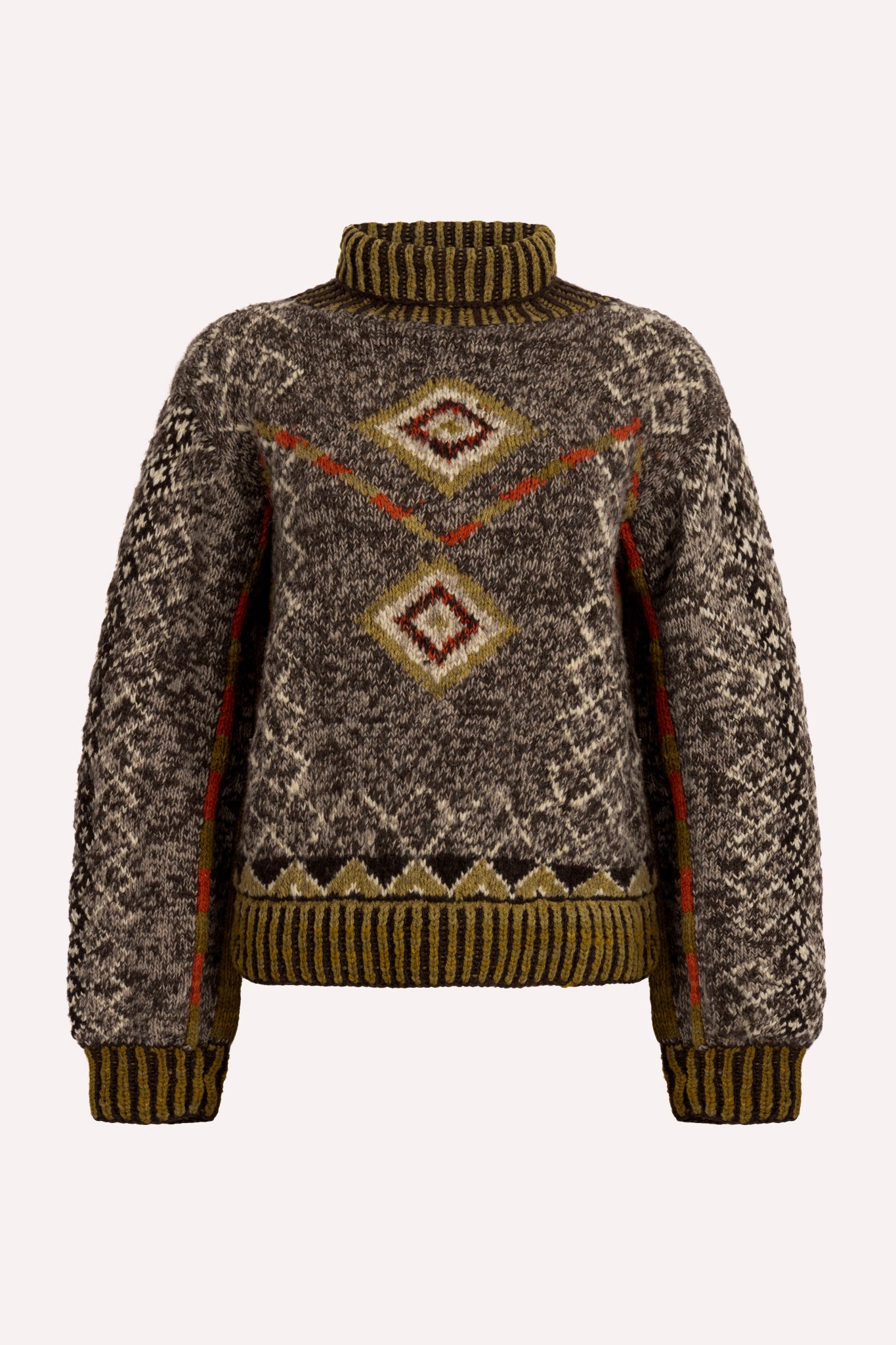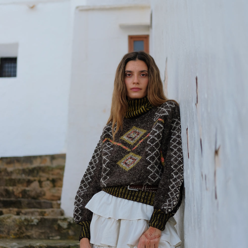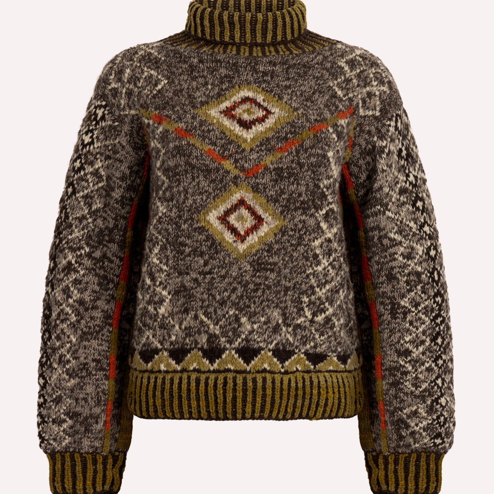 Crafted in partnership with Kullvi Whims, a collective nestled in the Himalayan mountains of India, discover the ZAZI knitwear collection embodying a deep connection to nature. Drawing from their ancestral knitting techniques, Kullvi Whims finds inspiration in the natural world, nurturing biodiversity and forestry through collaboration with local herders and indigenous sheep wool. Each piece reflects the heartfelt craftsmanship and dedication woven into its creation, inviting you to experience the love and artistry imbued in every stitch.